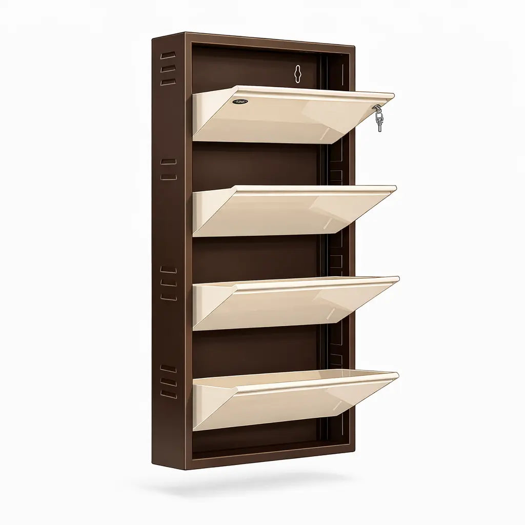 • Sale -52% Equal 4-Door Wall Mounted Metal Shoe Rack – Lock & Key | 12–15 Pairs Equal 4-Door Wall Mounted Metal Shoe Rack – Lock & Key | 12–15 Pairs