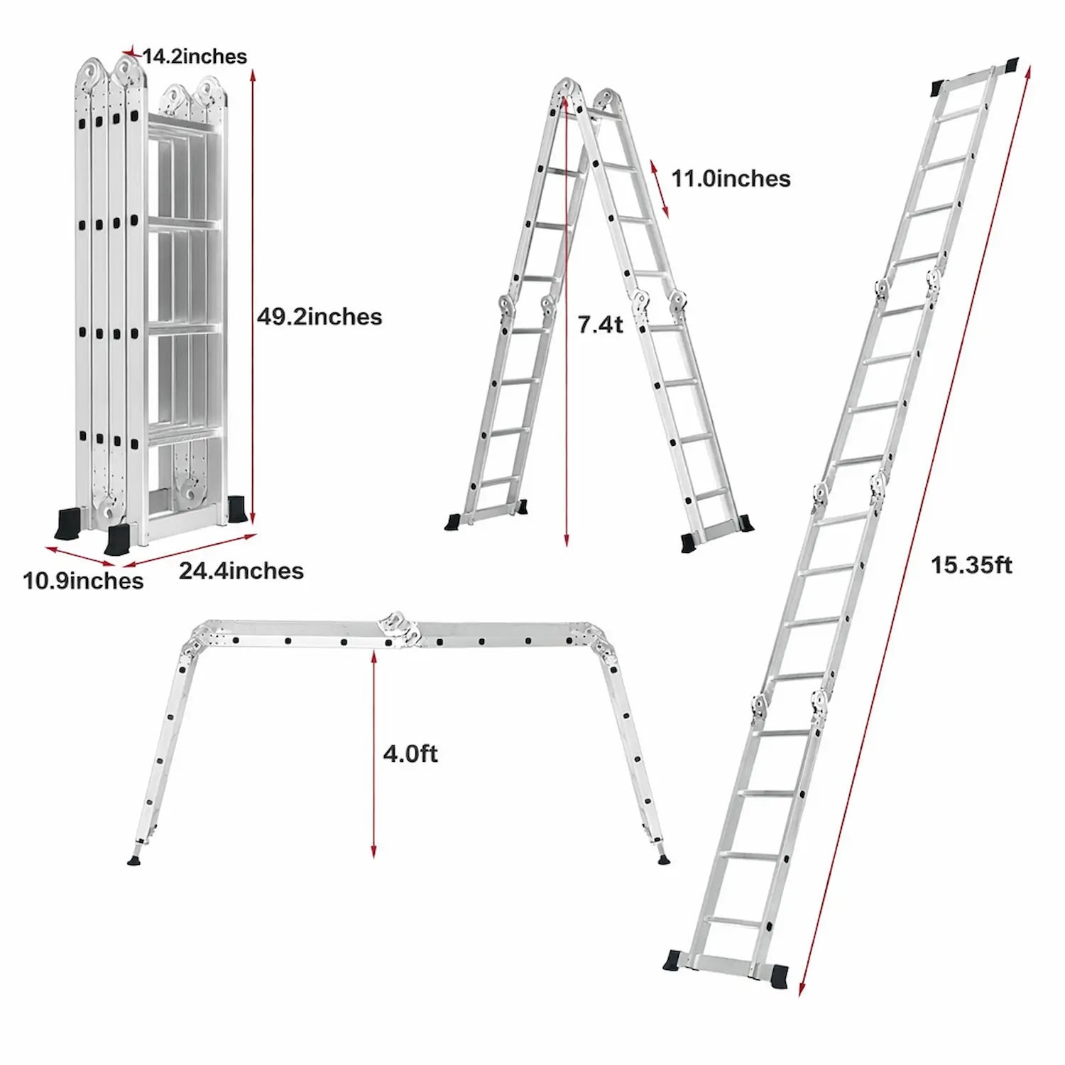 Equal 15 FT 7-in-1 Multipurpose Extension Aluminium Ladder – 150kg EN131 Certified