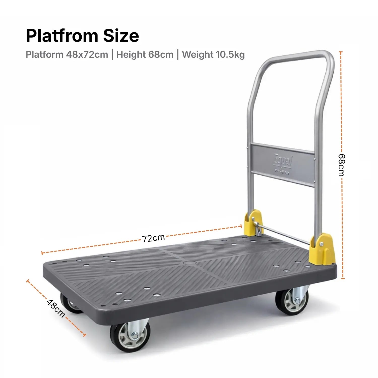 Equal 200kg Foldable Platform Trolley – Plastic Deck | 4 Inch Wheels | Grey