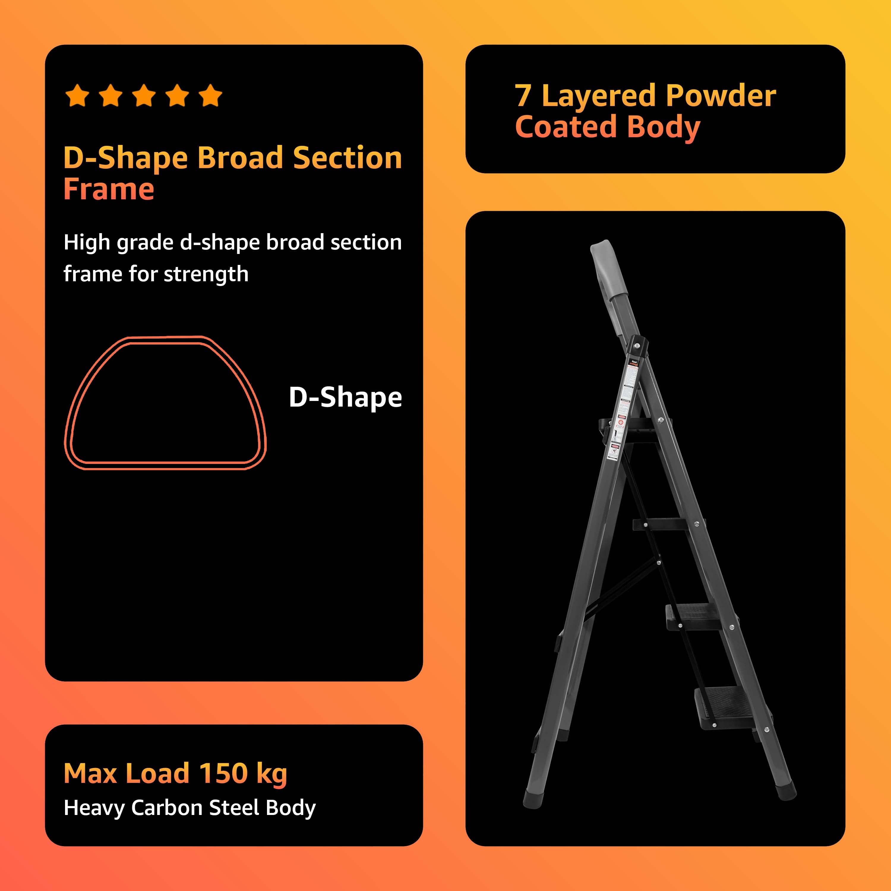 Equal Carbon-Series 4-Step Folding Ladder for Home & Office with Wide Anti-Skid Steps